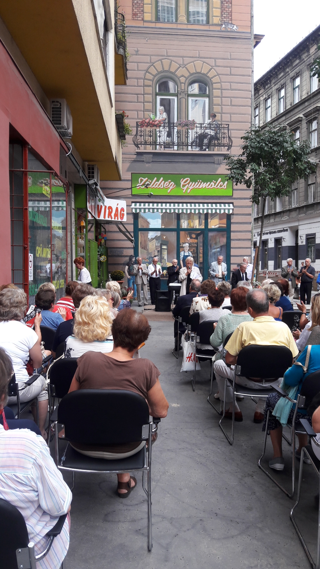 But all Seress’s songs were not that dark. One song which still seems to bring all Seress fans to their feet is Kids, Let’s Love One Another! On the warm afternoon of the little memorial event, around thirty loyal Seress fans sat in folding chairs below those very windows, singing his beloved melodies and remembering this Hungarian icon of popular song. When the keyboard-saxaphone group began to play this last song, everyone slowly stood up, and swaying happily to the music, sang in unison. In a nutshell, the words say that life is fleeting, nothing but a colorful dream, and the most important thing is to love one another!