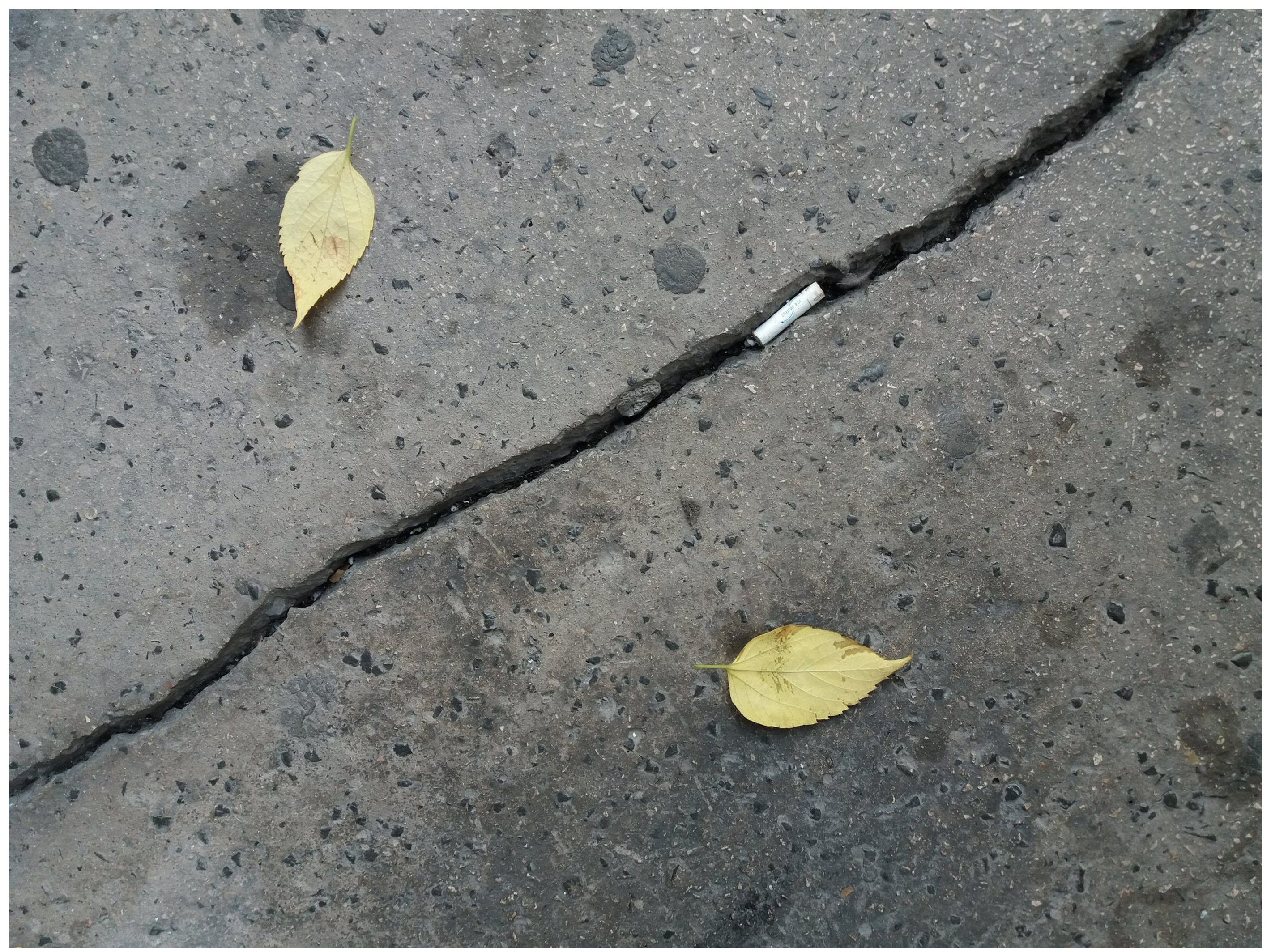 The photos began on the walls of Budapest in 2016 – Writing on the Walls – although the scrawls and paper fragments soon expanded to include texture and architectual details. Then I looked down, and On the Ground series began. The mixture of natural and human detritus forming compositions on pavement continues to draw my eye. The mixture of decay and life, the visual excitement of sharp detail, the nuances of found color is the material. The eye doesn’t stop.