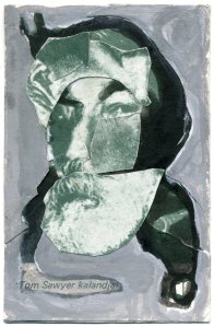 Adding cutting and collage to the techniques of the purple cards, these green pieces became quite disturbing – due to a combination of recognizable portrait and process of fragmentation.