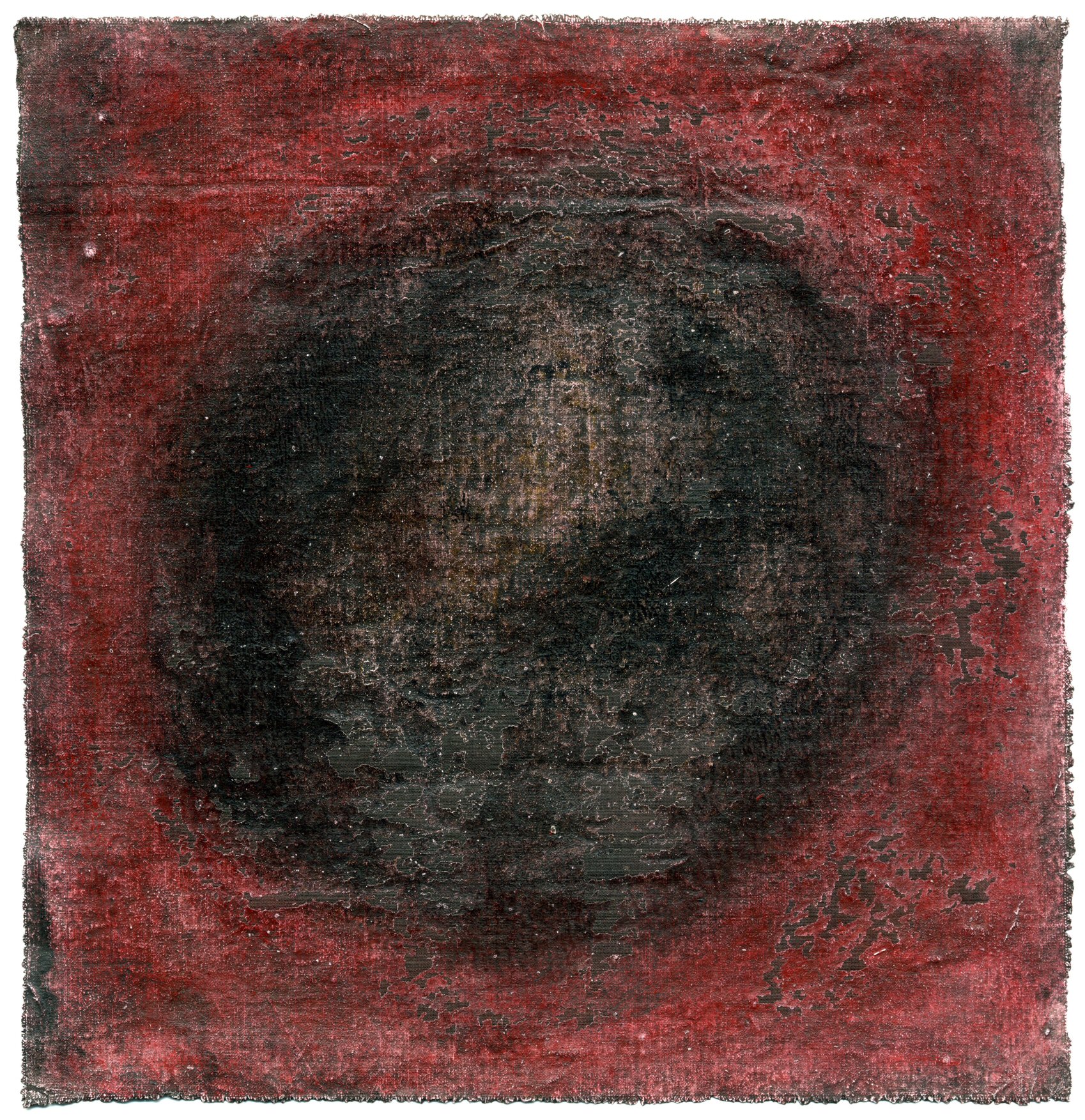 This new group of five small double-sided square acrylic paintings on cotton entitled Doors and Windows / Ajtó, ablak was made for the Society of Hungarian Painters‘ spring open exhibition of that same name. These newest works veer towards pure painting while still making use of pressed transfer of pigment and retaining the double-side functionality of recent works on paper.
