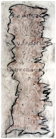 The Exile Series reflects a personal exploration of the concept of exile at this very moment in history when definitions of identity and assertions of exclusion rear themselves up in inflamed political contexts and when human beings are yet again being torn, thrust, and thrown asunder as they flee for their lives. Embedded in this theme is of course the resonance of previous world conflagrations and an even more ancient Exodus. The subject of wandering with its many implications and contexts is not a new one for me. The World Encyclopedia International Collaborative Artists’ Project, conceived of and curated by me in 2000, now permanently housed in the Ferencvárosi Historical Museum in Budapest speaks to this theme.