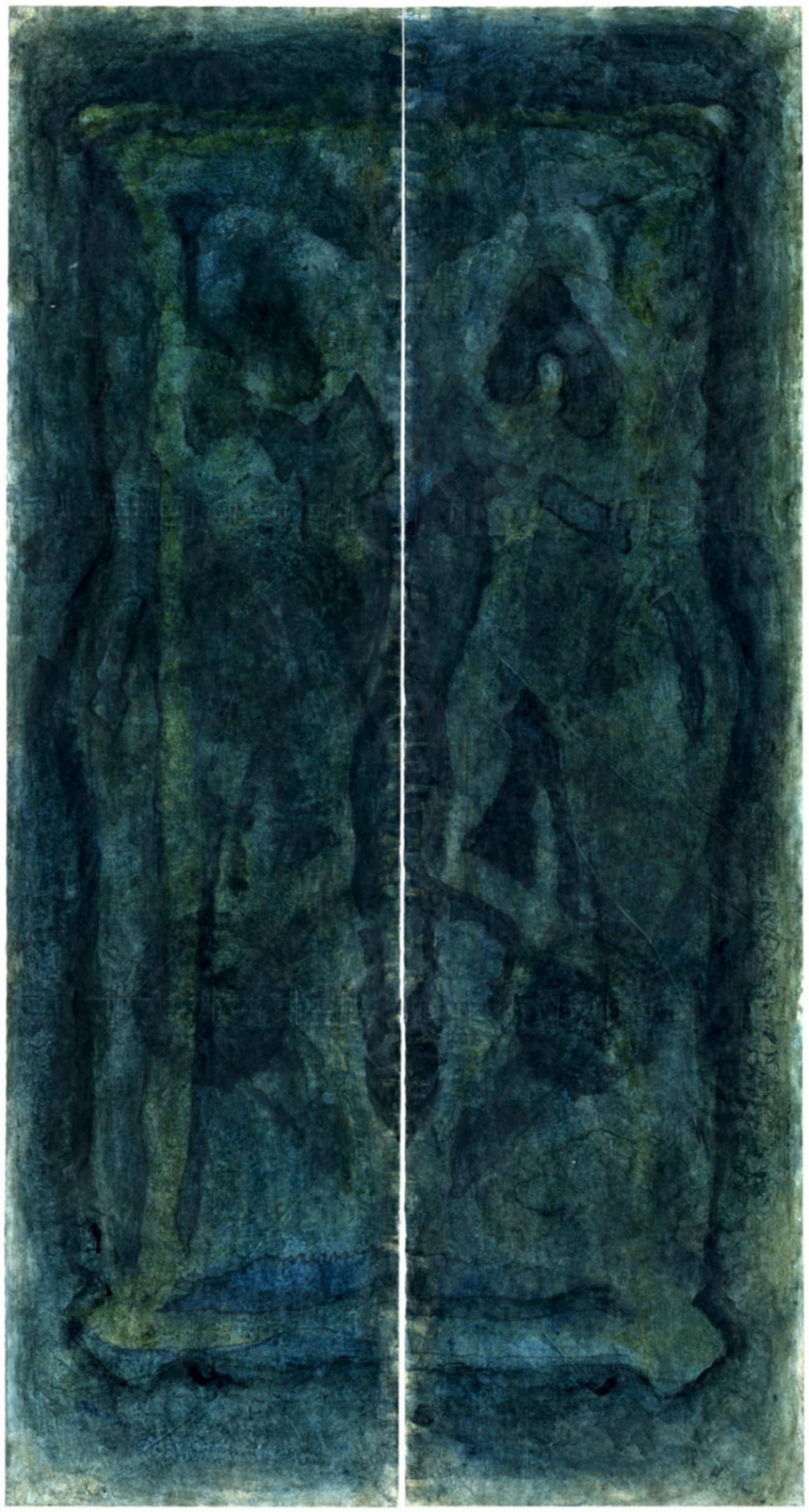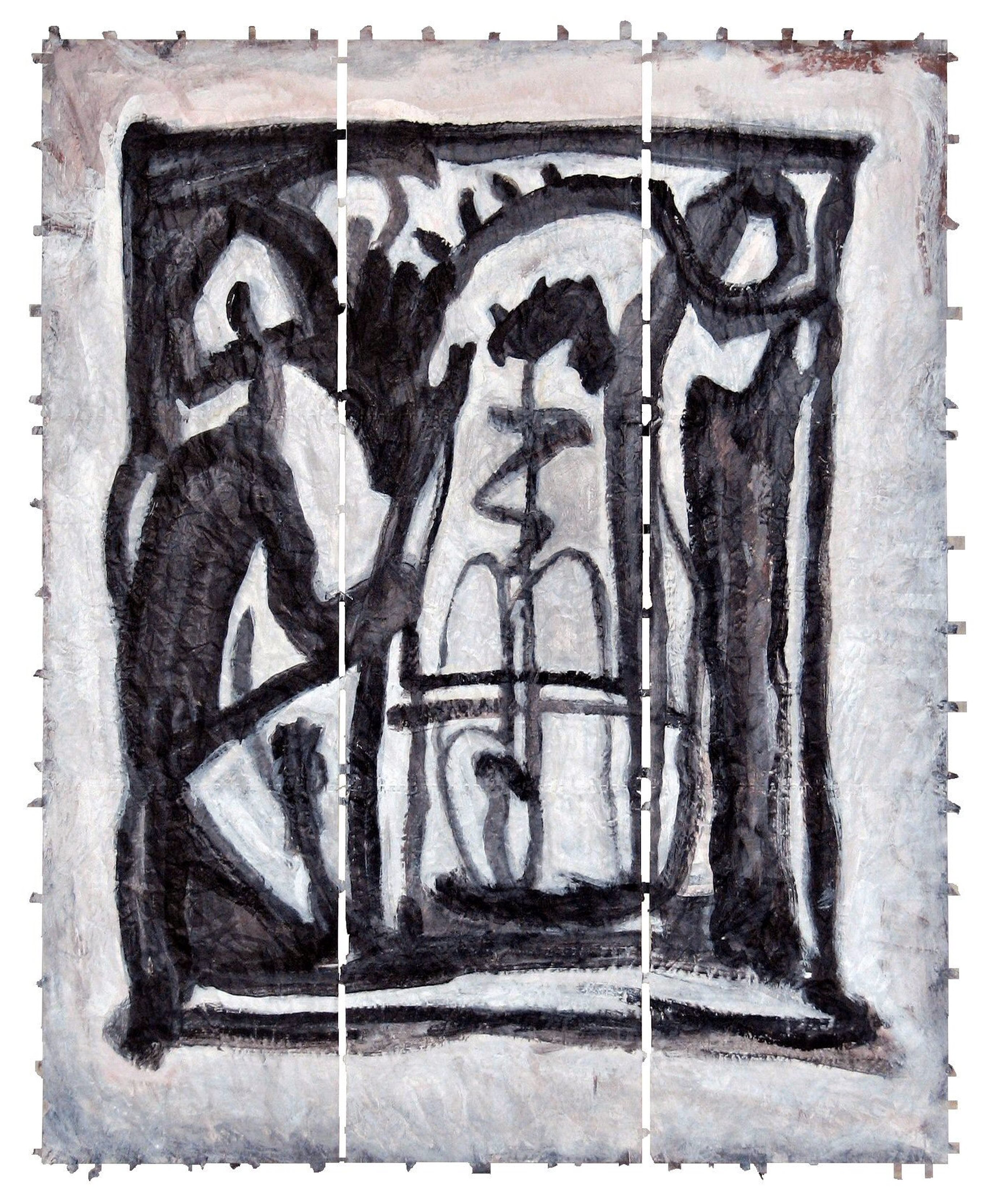 Process is of both conceptual and visual importance here, the making of the work itself having a performance aspect to it. Any installation, be it physical or digital, needs to present this thread of development. This page visually documents the metamorphosis of one Form Without Commentary figure from its skeletal foundation to the resultant Mirror Test/TükörTeszt (Recto & Verso) work.