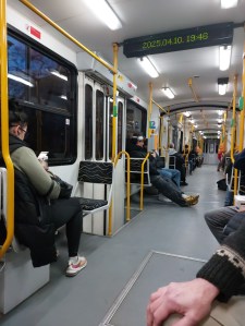 Last week on a still-chilly evening we went to the first art opening of this trip at the ARTUS STÚDIÓ, a huge, raw exhibition space in a former industrial building on the Buda side of the city. I’d never been there. Took the 4 metro from our stop at Rákóczi tér (square) to Móricz Zsigmond körtér (circle square) at the end of the line, where we hopped onto a tram for a few stops out to the Kelenföld neighborhood.