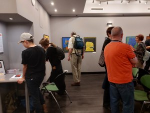 A couple of nights later we went to a second opening – “Fiktív arcképek és Titkos járatok” (Fictitious Portraits and Secret Passages), a solo exhibition of recent work by KOVÁTS ALBERT at the Múzeum Hotel Galéria. There was a huge turnout. Albert, an extraordinarily active artist and writer was, until recently, the long-time president of the Magyar Festők Társasága (Society of Hungarian Painters). HERE are some online photos of the exhibition and opening event and here below are some I shot while at the event.