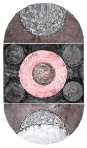This new, ongoing body of work, Spheres of Destiny & Variants follows along the same parameters as the other recent double-sided assemblages; the Swingeing Spots, Big Looming Assemblages, Spots of Retribution and Dark Spots & Black Holes. Why this persists I am not sure! It offers itself, it suggests, or with stronger imperative, demands. I oblige. Click on any image for larger images of each group seen sequentially: first, the Spheres of Destiny and below them, the Variants: