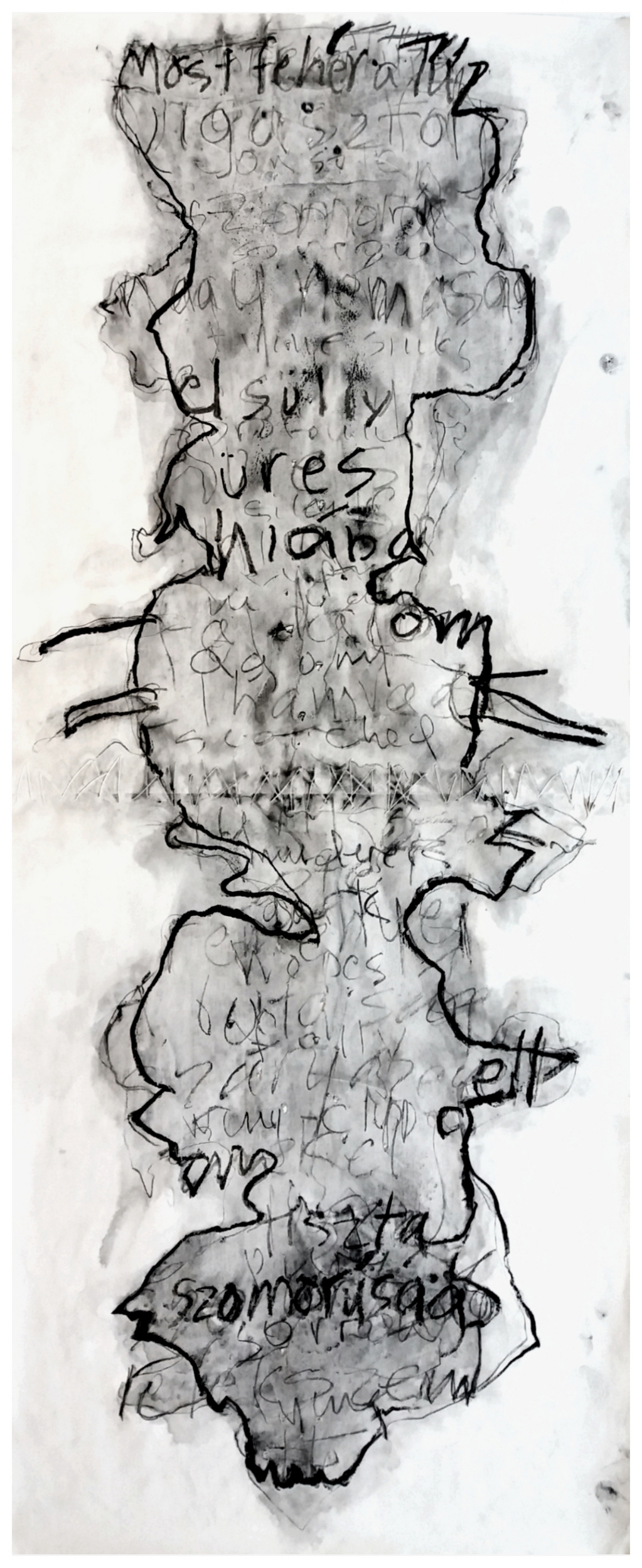 My two pieces in the exhibit, White Fire – 1 and 2, were done in the context of the Attila József series. These two new works revisited József ‘s poem Fire is Now White(Most Fehér a tűz) already the source of a piece by the same name.